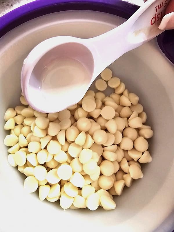 Melt dark chocolate or white chocolate in your heat-safe bowl over a double boiler or candy melt setup. Add a teaspoon of vegetable oil; this helps give your chocolate a smooth, tempered look. Be sure to check the end of my blog post for more tips and tricks on adding vegetable oil when melting chocolate. Stir everything together until it's smooth!Step 4: Whip Up This Chocolatey Snack